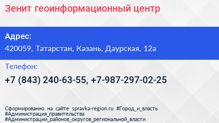 Зенит, геоинформационный центр по адресу 420059, Татарстан, Казань, Даурская, 12а в дальнейшем Организация, размещена в следующих категориях: