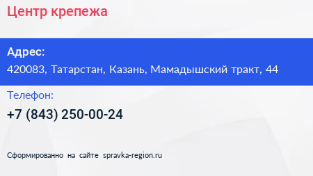 Центр крепежа по адресу 420083, Татарстан, Казань, Мамадышский тракт, 44 в дальнейшем Организация, размещена в следующих категориях: