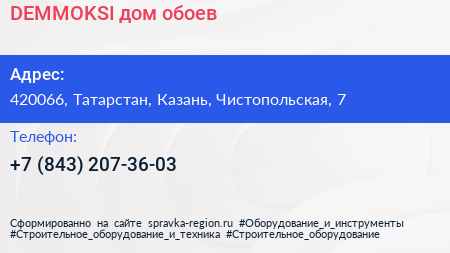 DEMMOKSI, дом обоев по адресу 420066, Татарстан, Казань, Чистопольская, 7 в дальнейшем Организация, размещена в следующих категориях:
