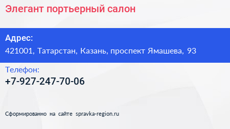 Элегант, портьерный салон по адресу 421001, Татарстан, Казань, проспект Ямашева, 93 в дальнейшем Организация, размещена в следующих категориях: