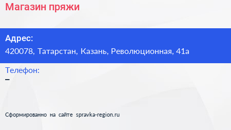 Магазин пряжи по адресу 420078, Татарстан, Казань, Революционная, 41а в дальнейшем Организация, размещена в следующих категориях:
