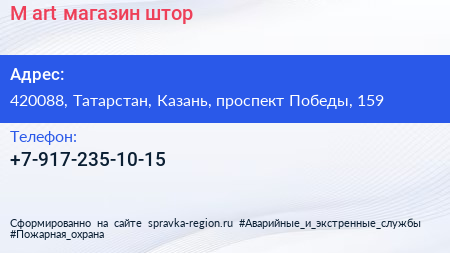 M`art, магазин штор по адресу 420088, Татарстан, Казань, проспект Победы, 159 в дальнейшем Организация, размещена в следующих категориях: