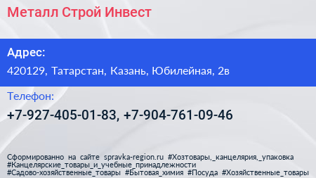 Металл Строй Инвест по адресу 420129, Татарстан, Казань, Юбилейная, 2в в дальнейшем Организация, размещена в следующих категориях: