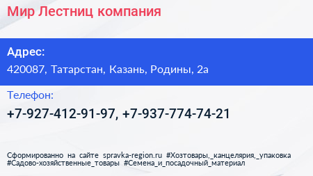 Мир Лестниц, компания по адресу 420087, Татарстан, Казань, Родины, 2а в дальнейшем Организация, размещена в следующих категориях: