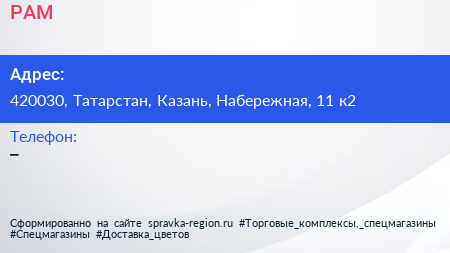 РАМ по адресу 420030, Татарстан, Казань, Набережная, 11 к2 в дальнейшем Организация, размещена в следующих категориях: