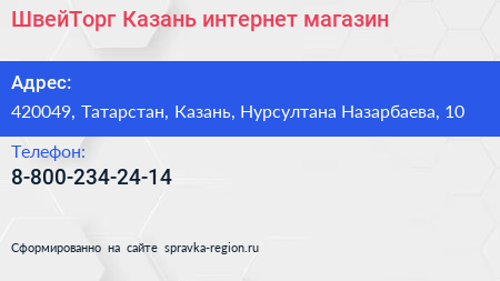 ШвейТорг Казань, интернет-магазин по адресу 420049, Татарстан, Казань, Нурсултана Назарбаева, 10 в дальнейшем Организация, размещена в следующих категориях: