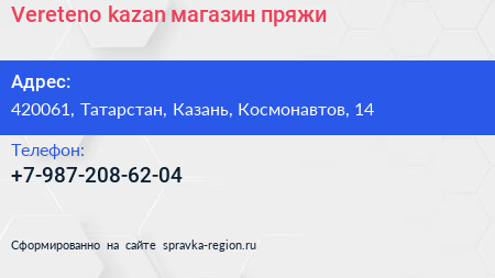 Vereteno kazan, магазин пряжи по адресу 420061, Татарстан, Казань, Космонавтов, 14 в дальнейшем Организация, размещена в следующих категориях: