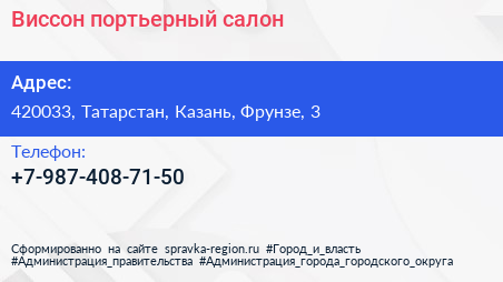 Виссон, портьерный салон по адресу 420033, Татарстан, Казань, Фрунзе, 3 в дальнейшем Организация, размещена в следующих категориях: