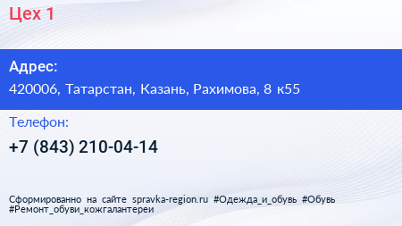 Цех №1 по адресу 420006, Татарстан, Казань, Рахимова, 8 к55 в дальнейшем Организация, размещена в следующих категориях:
