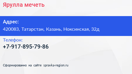 Ярулла, мечеть по адресу 420083, Татарстан, Казань, Ноксинская, 32д в дальнейшем Организация, размещена в следующих категориях:
