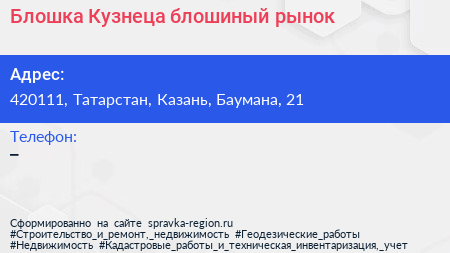 Блошка Кузнеца, блошиный рынок по адресу 420111, Татарстан, Казань, Баумана, 21 в дальнейшем Организация, размещена в следующих категориях: