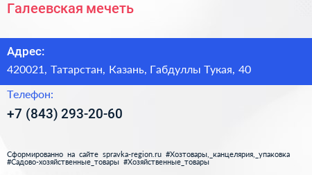 Галеевская мечеть по адресу 420021, Татарстан, Казань, Габдуллы Тукая, 40 в дальнейшем Организация, размещена в следующих категориях: