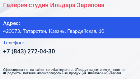 Галерея-студия Ильдара Зарипова по адресу 420073, Татарстан, Казань, Гвардейская, 10 в дальнейшем Организация, размещена в следующих категориях: