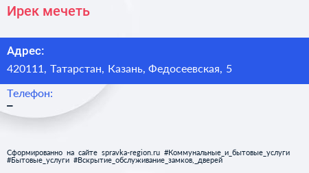 Ирек, мечеть по адресу 420111, Татарстан, Казань, Федосеевская, 5 в дальнейшем Организация, размещена в следующих категориях: