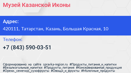 Музей Казанской Иконы по адресу 420111, Татарстан, Казань, Большая Красная, 10 в дальнейшем Организация, размещена в следующих категориях: