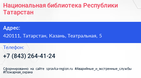 Национальная библиотека Республики Татарстан по адресу 420111, Татарстан, Казань, Театральная, 5 в дальнейшем Организация, размещена в следующих категориях: