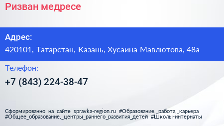 Ризван, медресе по адресу 420101, Татарстан, Казань, Хусаина Мавлютова, 48а в дальнейшем Организация, размещена в следующих категориях:
