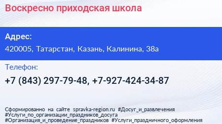 Воскресно-приходская школа по адресу 420005, Татарстан, Казань, Калинина, 38а в дальнейшем Организация, размещена в следующих категориях: