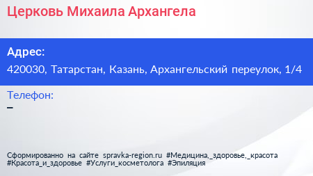 Церковь Михаила Архангела по адресу 420030, Татарстан, Казань, Архангельский переулок, 1/4 в дальнейшем Организация, размещена в следующих категориях: