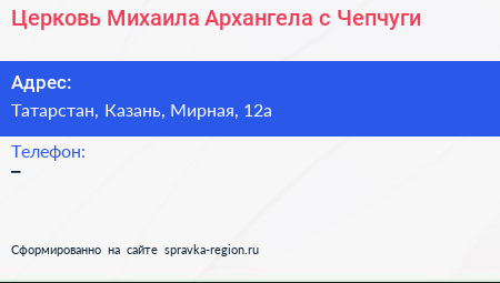 Церковь Михаила Архангела, с. Чепчуги по адресу Татарстан, Казань, Мирная, 12а в дальнейшем Организация, размещена в следующих категориях: