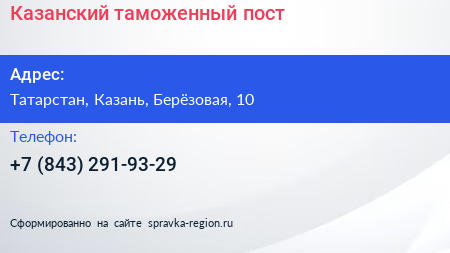 Казанский таможенный пост по адресу Татарстан, Казань, Берёзовая, 10 в дальнейшем Организация, размещена в следующих категориях: