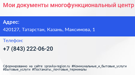 Мои документы, многофункциональный центр по адресу 420127, Татарстан, Казань, Максимова, 1 в дальнейшем Организация, размещена в следующих категориях: