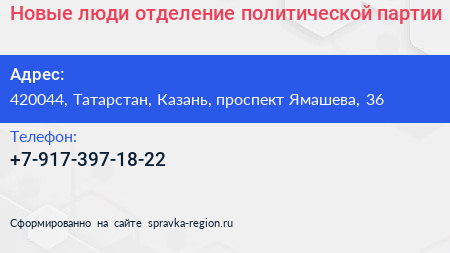 Новые люди, отделение политической партии по адресу 420044, Татарстан, Казань, проспект Ямашева, 36 в дальнейшем Организация, размещена в следующих категориях: