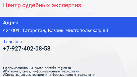 Центр судебных экспертиз по адресу 421001, Татарстан, Казань, Чистопольская, 83 в дальнейшем Организация, размещена в следующих категориях: