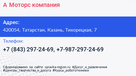 А-Моторс, компания по адресу 420054, Татарстан, Казань, Тихорецкая, 7 в дальнейшем Организация, размещена в следующих категориях: