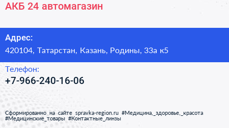 АКБ-24, автомагазин по адресу 420104, Татарстан, Казань, Родины, 33а к5 в дальнейшем Организация, размещена в следующих категориях: