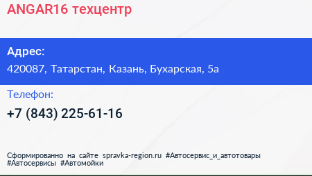 ANGAR16, техцентр по адресу 420087, Татарстан, Казань, Бухарская, 5а в дальнейшем Организация, размещена в следующих категориях: