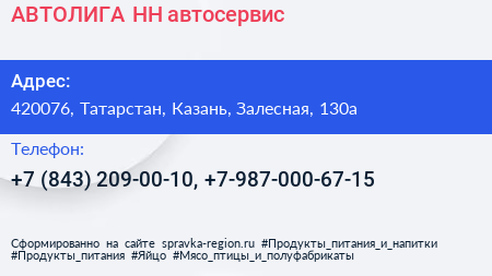 АВТОЛИГА НН, автосервис по адресу 420076, Татарстан, Казань, Залесная, 130а в дальнейшем Организация, размещена в следующих категориях: