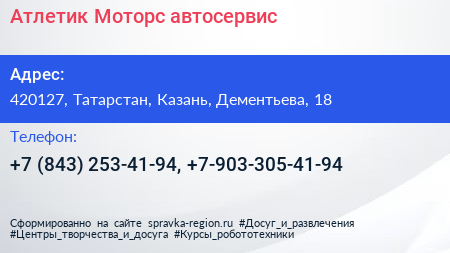 Атлетик Моторс, автосервис по адресу 420127, Татарстан, Казань, Дементьева, 18 в дальнейшем Организация, размещена в следующих категориях: