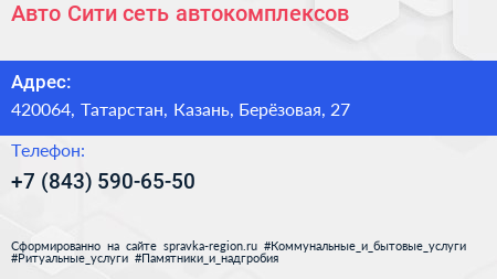 Авто-Сити, сеть автокомплексов по адресу 420064, Татарстан, Казань, Берёзовая, 27 в дальнейшем Организация, размещена в следующих категориях: