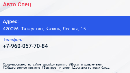 Авто-Спец по адресу 420096, Татарстан, Казань, Лесная, 15 в дальнейшем Организация, размещена в следующих категориях: