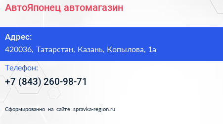 АвтоЯпонец, автомагазин по адресу 420036, Татарстан, Казань, Копылова, 1а в дальнейшем Организация, размещена в следующих категориях: