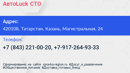 АвтоLuck, СТО по адресу 420108, Татарстан, Казань, Магистральная, 24 в дальнейшем Организация, размещена в следующих категориях: