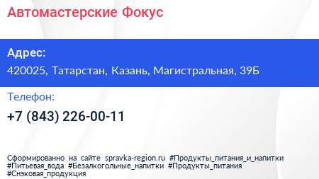 Автомастерские Фокус по адресу 420025, Татарстан, Казань, Магистральная, 39Б в дальнейшем Организация, размещена в следующих категориях: