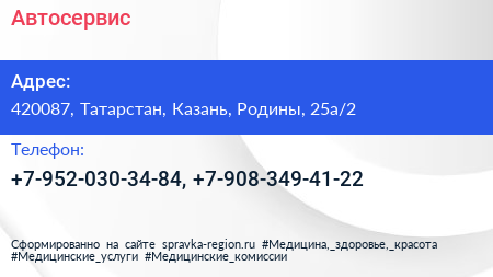 Автосервис по адресу 420087, Татарстан, Казань, Родины, 25а/2 в дальнейшем Организация, размещена в следующих категориях: