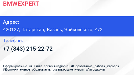 BMWEXPERT по адресу 420127, Татарстан, Казань, Чайковского, 4/2 в дальнейшем Организация, размещена в следующих категориях: