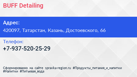 BUFF Detailing по адресу 420097, Татарстан, Казань, Достоевского, 66 в дальнейшем Организация, размещена в следующих категориях: