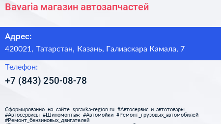 Bavaria, магазин автозапчастей по адресу 420021, Татарстан, Казань, Галиаскара Камала, 7 в дальнейшем Организация, размещена в следующих категориях: