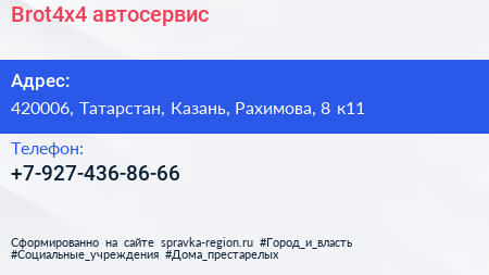 Brot4x4, автосервис по адресу 420006, Татарстан, Казань, Рахимова, 8 к11 в дальнейшем Организация, размещена в следующих категориях: