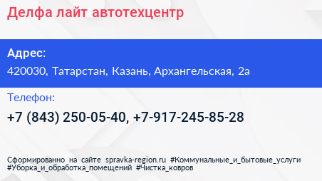 Делфа-лайт, автотехцентр по адресу 420030, Татарстан, Казань, Архангельская, 2а в дальнейшем Организация, размещена в следующих категориях: