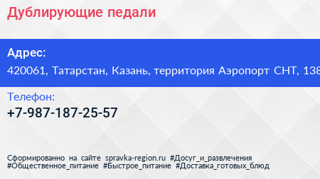 Дублирующие педали по адресу 420061, Татарстан, Казань, территория Аэропорт СНТ, 138 в дальнейшем Организация, размещена в следующих категориях: