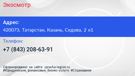 Экосмотр по адресу 420073, Татарстан, Казань, Седова, 2 к1 в дальнейшем Организация, размещена в следующих категориях: