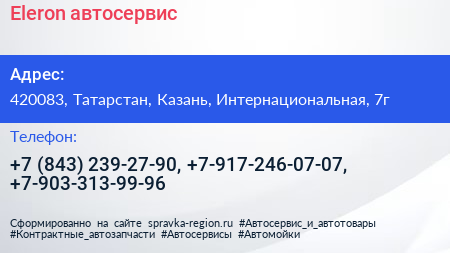 Eleron, автосервис по адресу 420083, Татарстан, Казань, Интернациональная, 7г в дальнейшем Организация, размещена в следующих категориях: