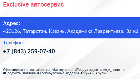 Exclusive, автосервис по адресу 420126, Татарстан, Казань, Академика Лаврентьева, 3а к1 в дальнейшем Организация, размещена в следующих категориях: