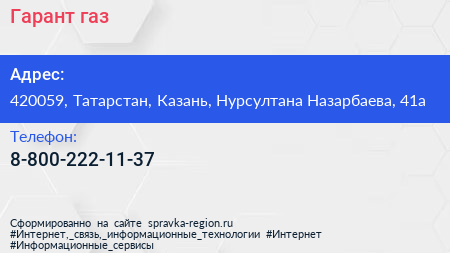 Гарант-газ по адресу 420059, Татарстан, Казань, Нурсултана Назарбаева, 41а в дальнейшем Организация, размещена в следующих категориях: