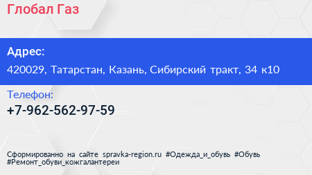 Глобал Газ по адресу 420029, Татарстан, Казань, Сибирский тракт, 34 к10 в дальнейшем Организация, размещена в следующих категориях: